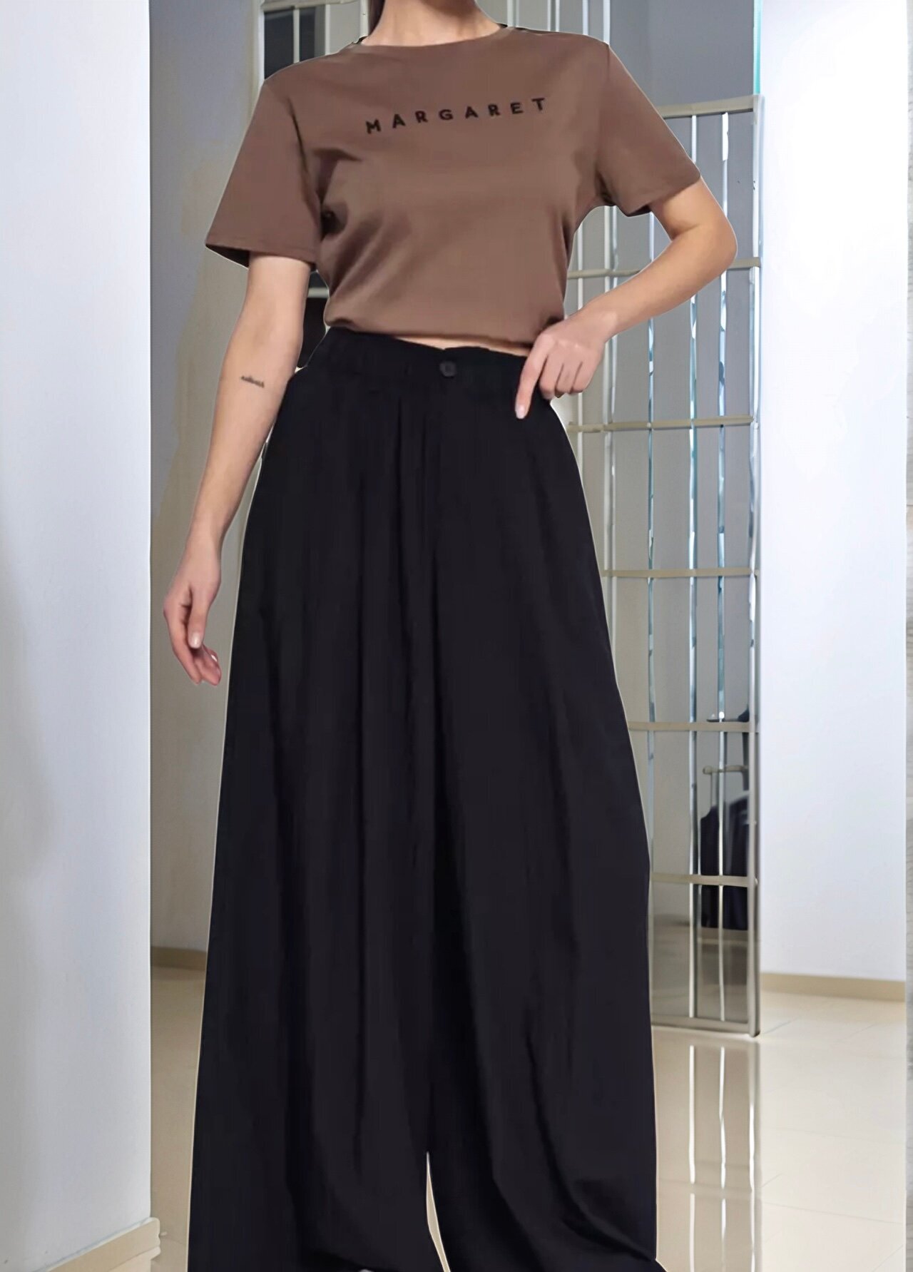 Женские широкие черные брюки от бренда Dommo – это стильный и комфортный выбор для летнего сезона.
