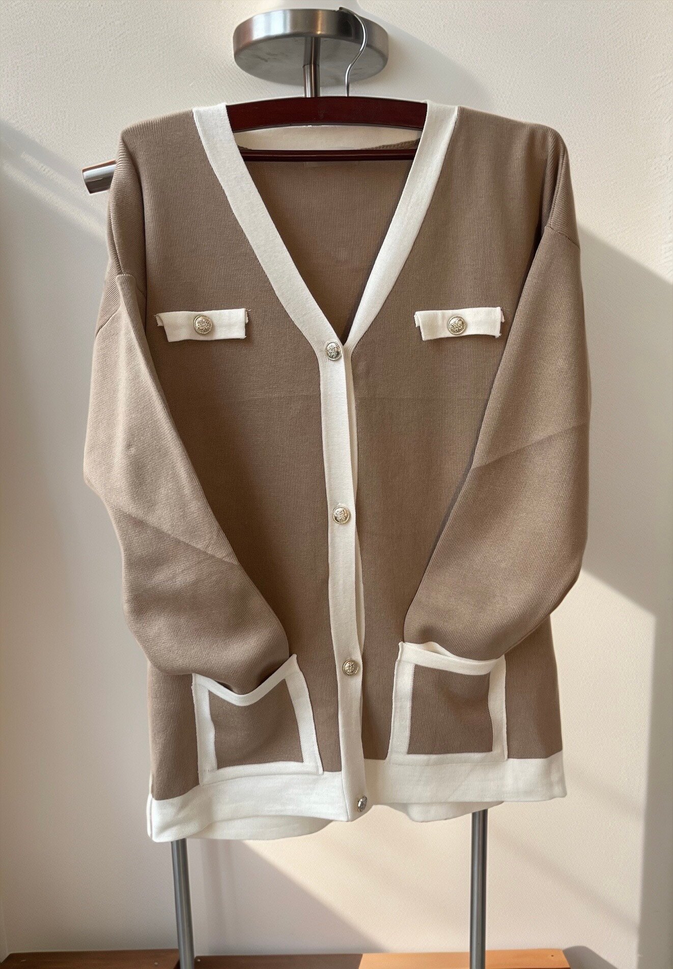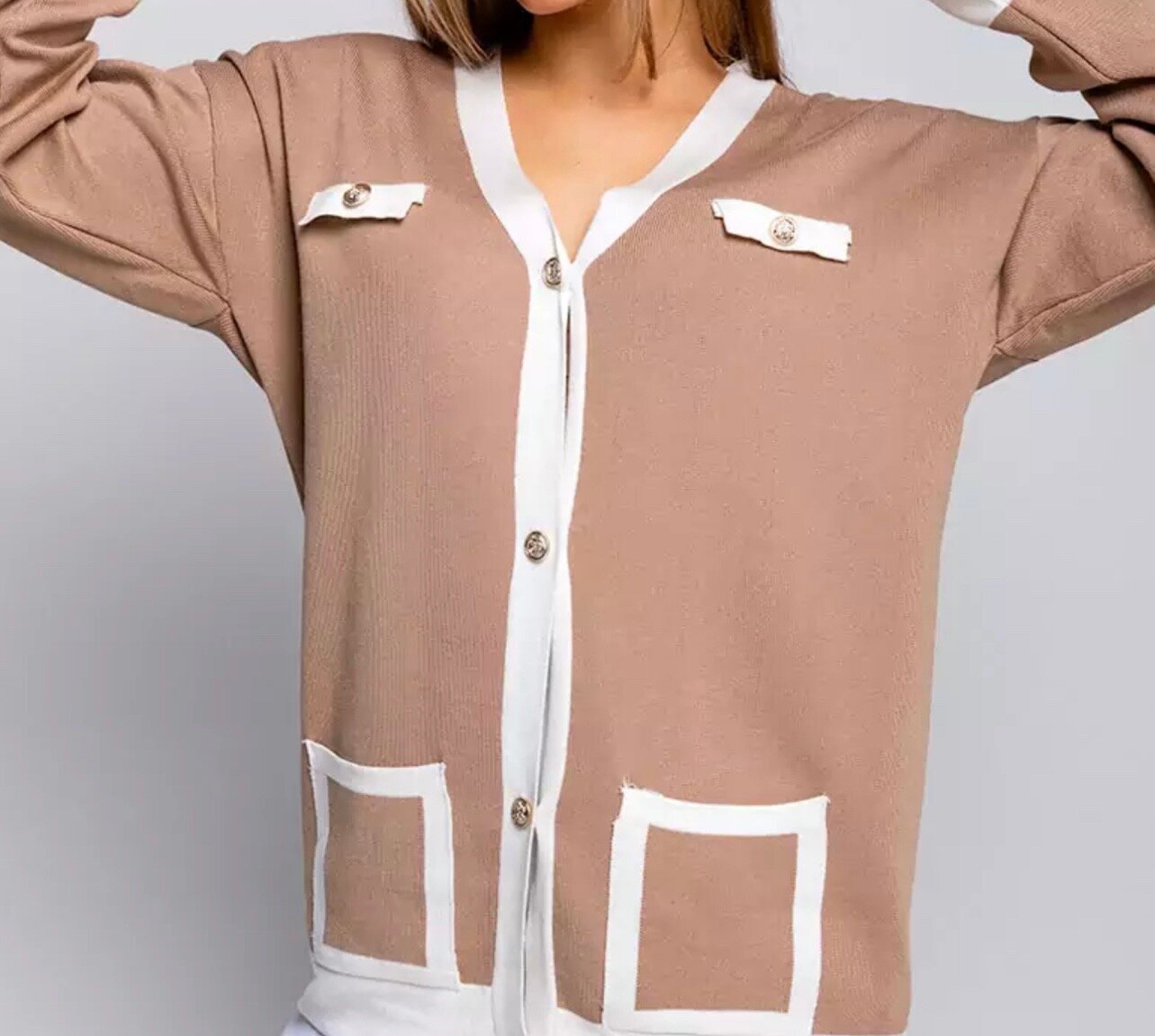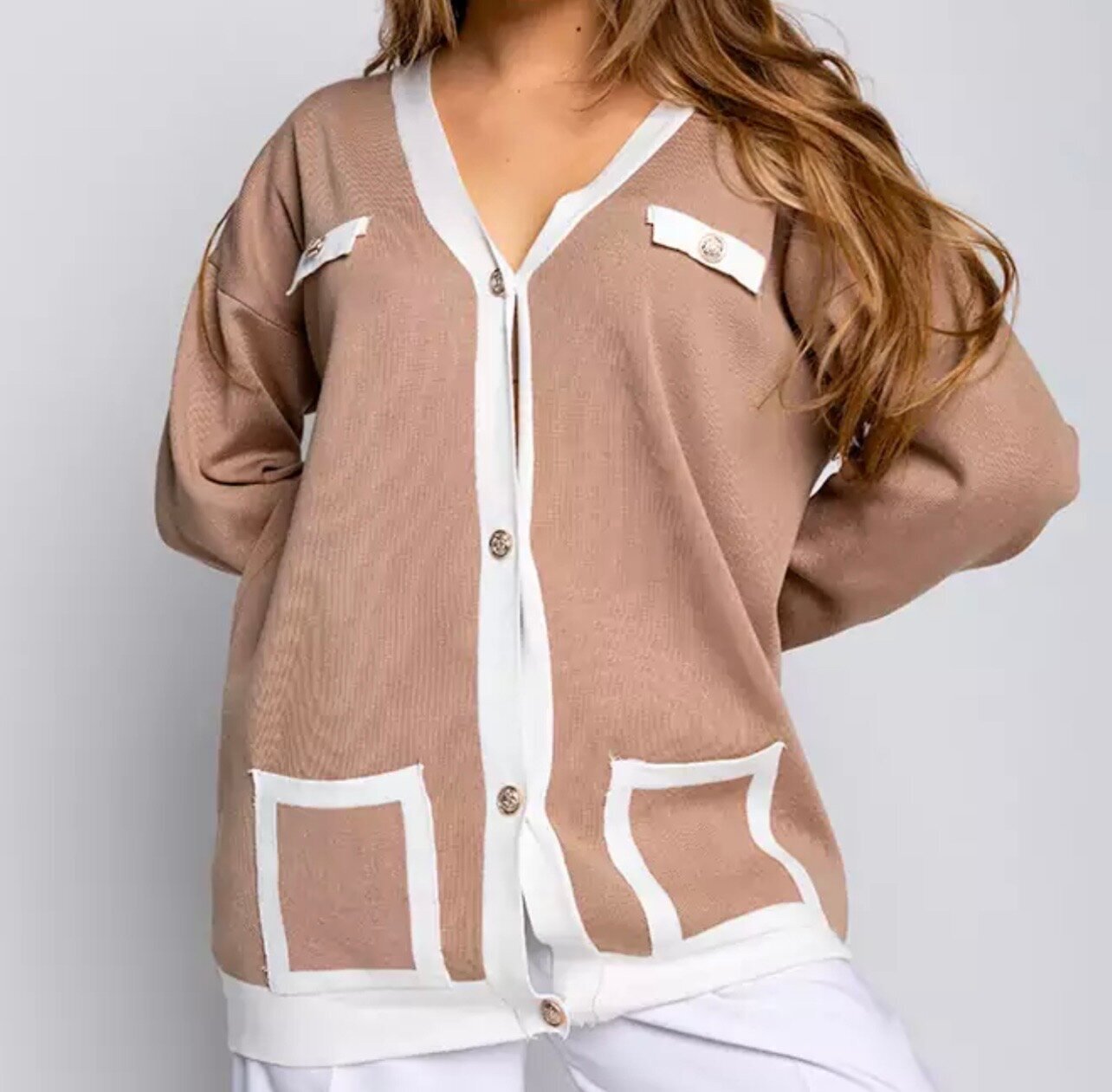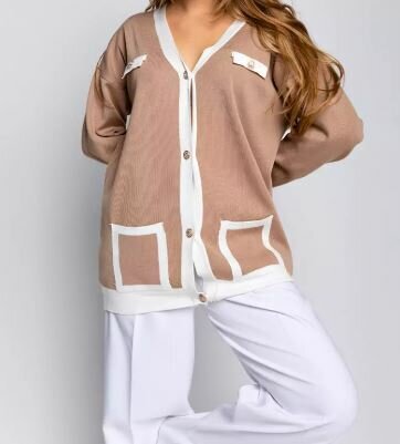 Кардиган – это незаменимая вещь для большинства женщин, вне зависимости от типа фигуры. Демисезонный кардиган, выполненный в бежевом и белом цветах, станет отличным дополнением к вашему гардеробу.