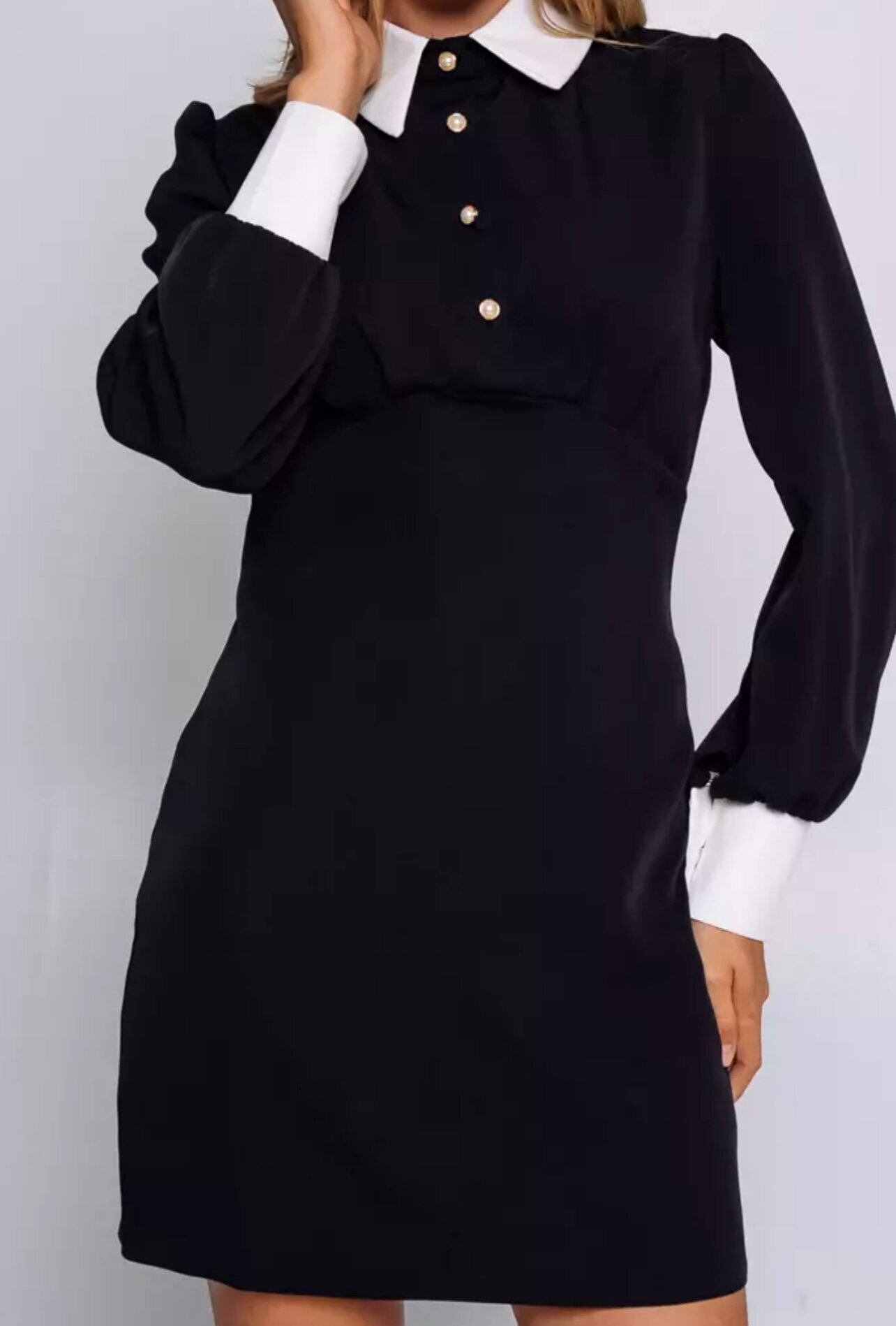 Черное платье — это классика, которая никогда не выходит из моды. Это черное платье мини выполнено в школьном стиле и отлично подойдёт как для учёбы, так и для повседневных образов.