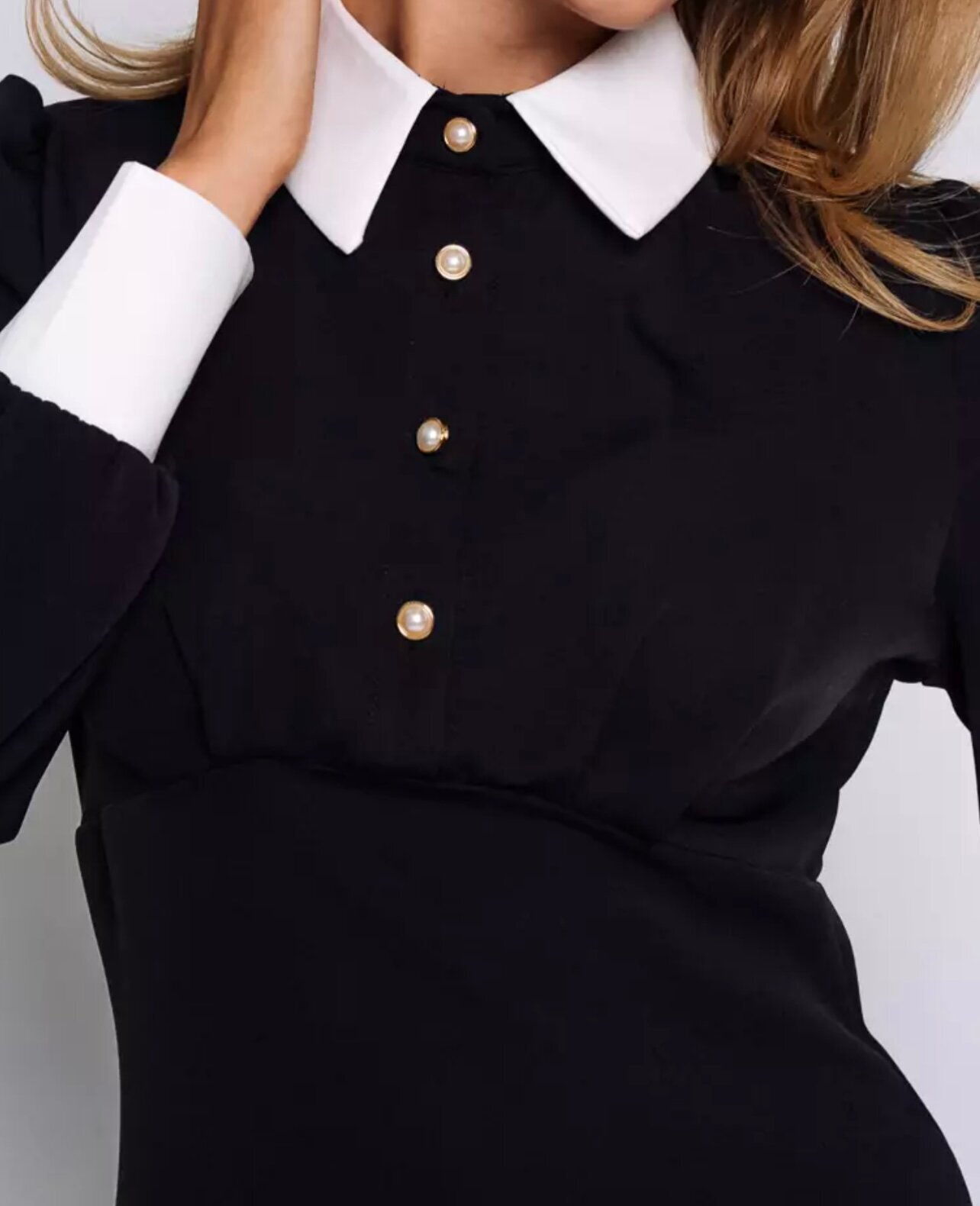 👗 Черное платье с изящным фасоном — подчёркивает фигуру и придаёт образу аккуратность и элегантность.