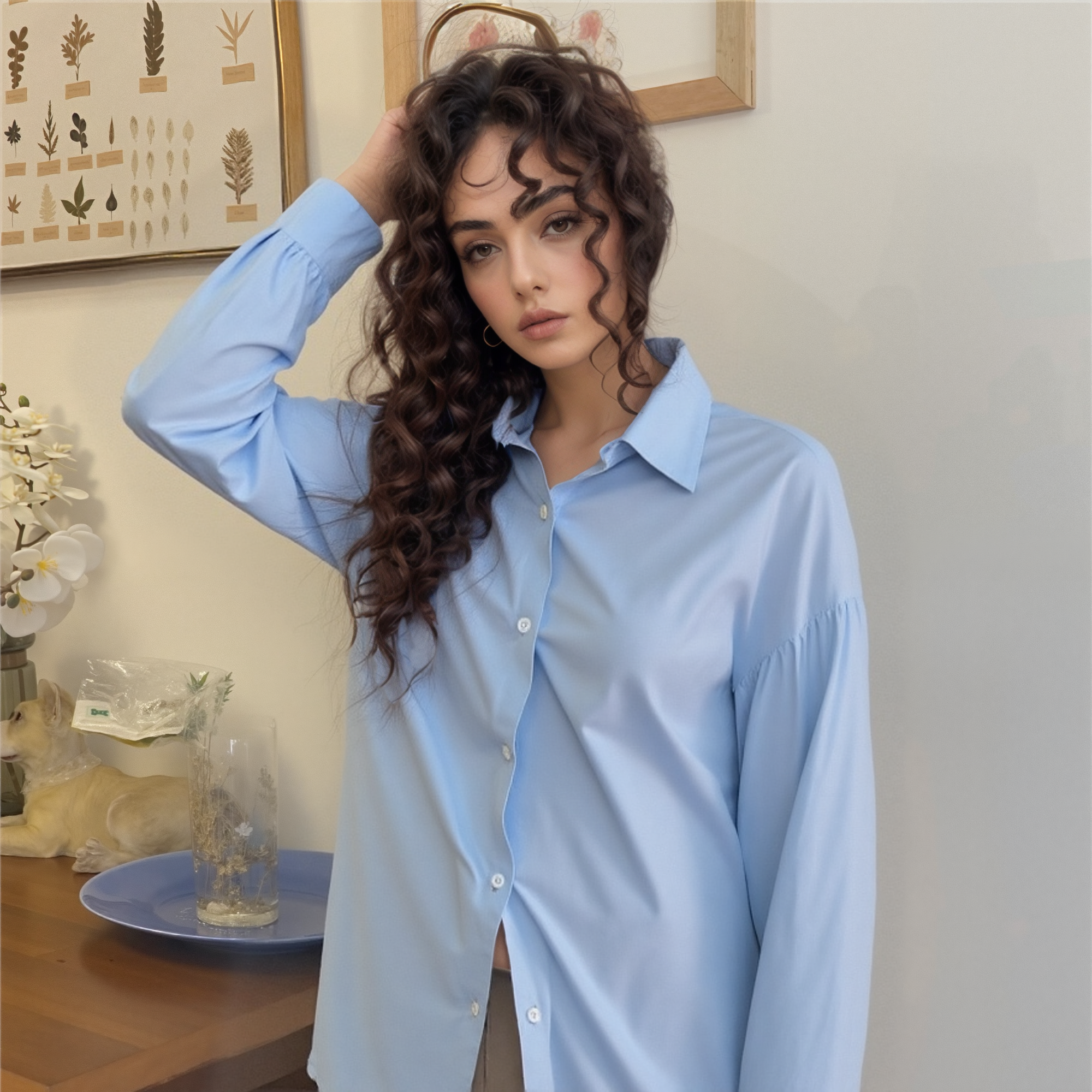 Эта женская голубая рубашка с длинным рукавом размера 44 - отличный выбор для тех, кто ценит комфорт и стиль.