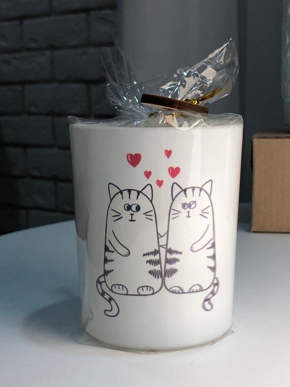 Свеча парафиновая "Влюбленные котики" - это не просто источник света, но и стильный элемент декора. На ней изображены двое влюбленные котики, что делает ее прекрасным подарком для любителей милых и забавных вещей.