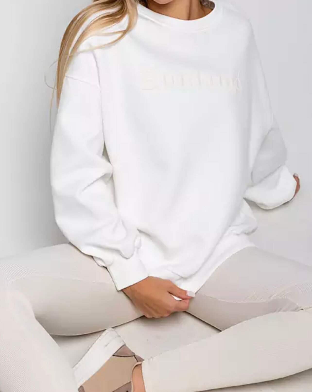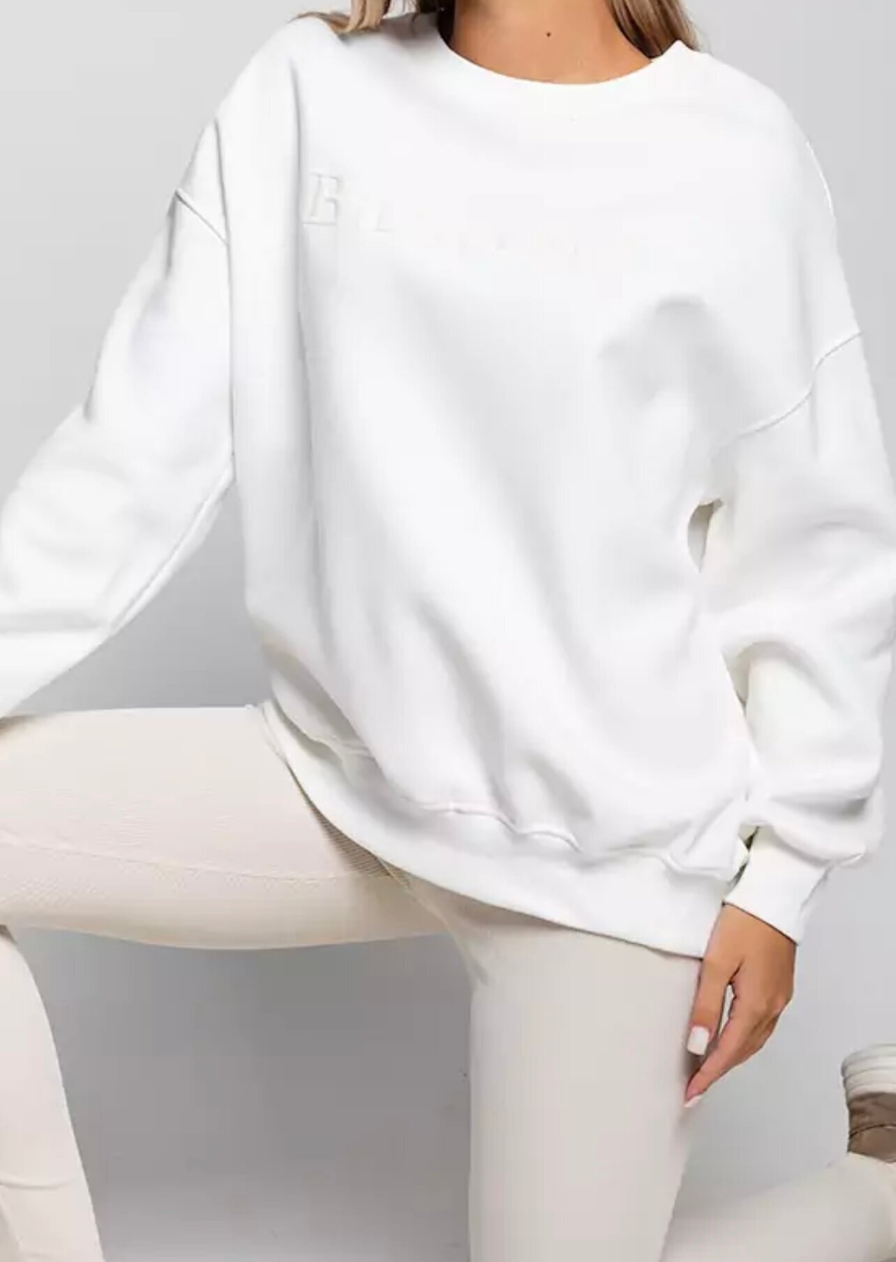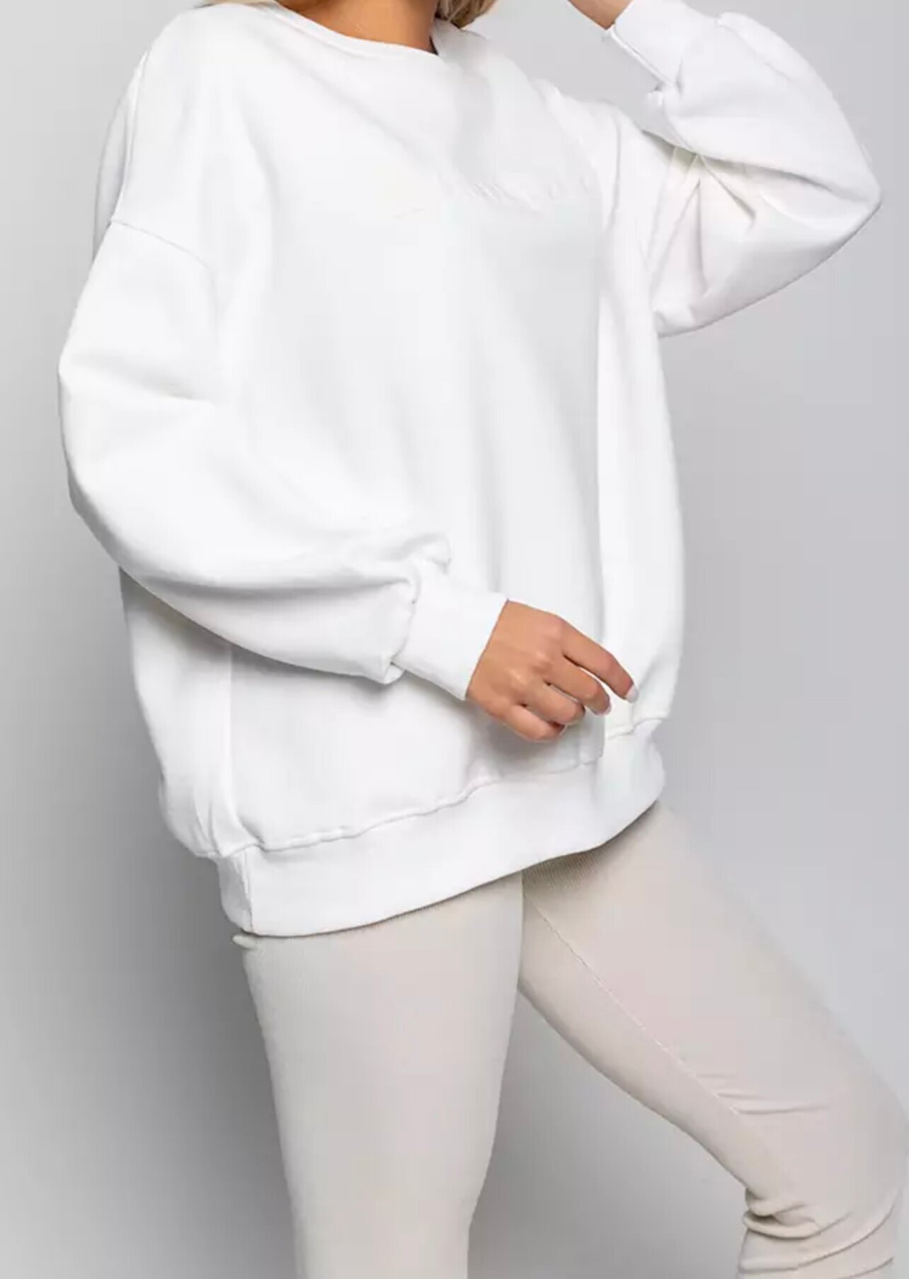 Свитшот женский белый оверсайз подойдет для ношения в любое время года, обеспечивая комфорт и тепло в прохладную погоду.