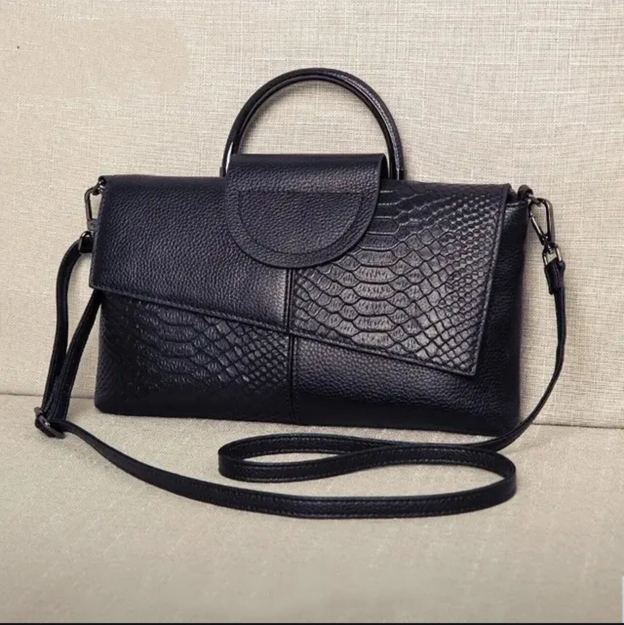 Элегантная черная сумка через плечо станет отличным дополнением вашего гардероба. Изготовленная из мягкой искусственной кожи, она сочетает в себе долговечность и стильный внешний вид.